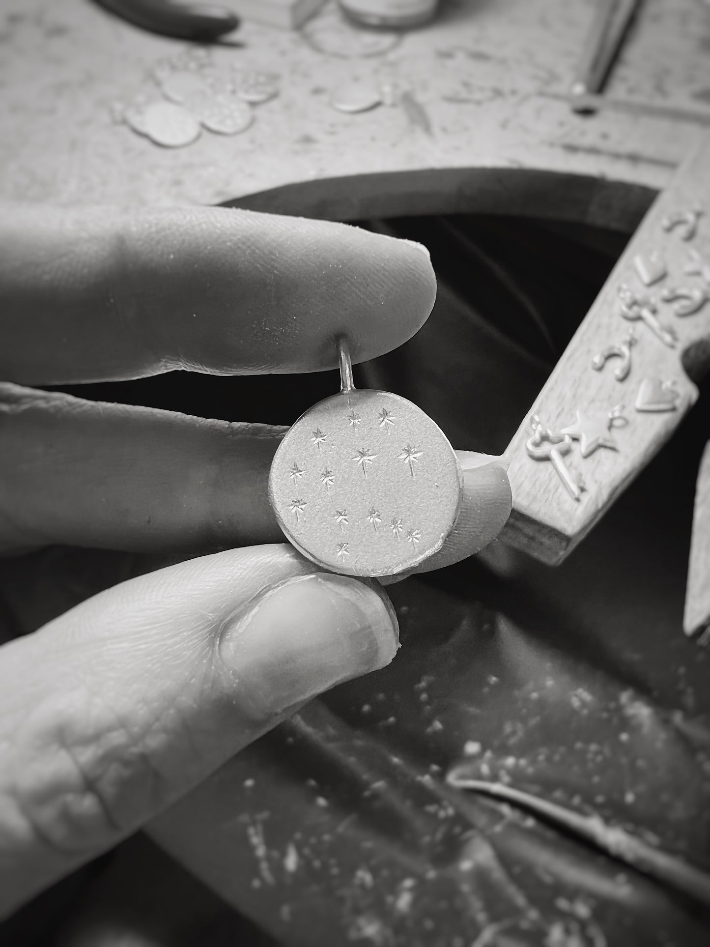 Pieces are either made to order, or occasionally made in small batches, from recycled or ethically sourced materials. We do this so we are not over producing and leading to waste. We reuse and recycle our off cuts and shavings from the silver and gold we use.